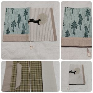 このブックカバーをパッチワークする時、何かしら手に取ってくださった方がこの小さな面積のパッチワークの繋がりにストーリーを感じていただけたらいいなと思いながら制作しています。