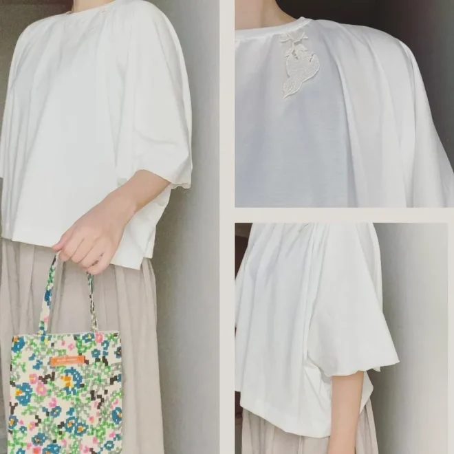 こちらの方も身長のある方です。私は身長が低いので背の高い方がとってもうらやましいのですが、この方もとっても素敵に着こなしてくださっています。袖のフレアーの感じとかとってもいい雰囲気に画像を撮ってくださっています。