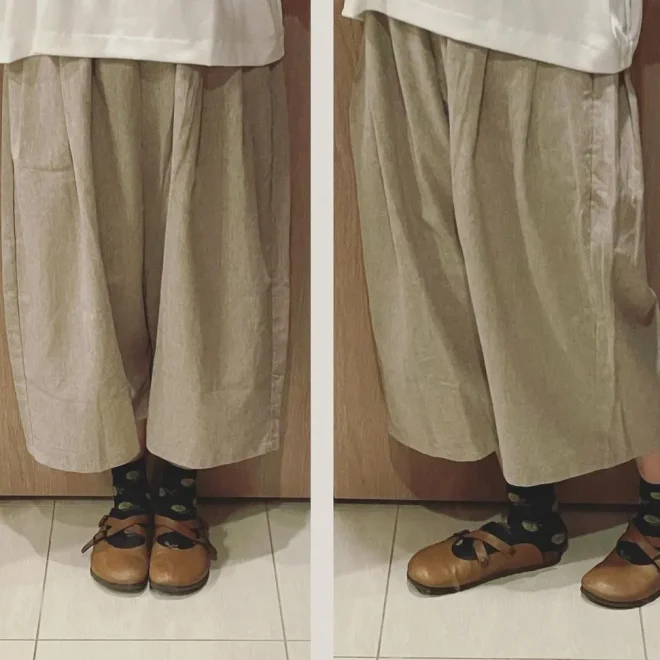 トップスと合わせてご着用くださっているサルエル風パンツはとっても気に入って下さり、今まで履いたことがなっかったとのことですが、別でお色違いをご購入くださったくらいお気に入りとの事で、お送りできて本当に良かったと思います。