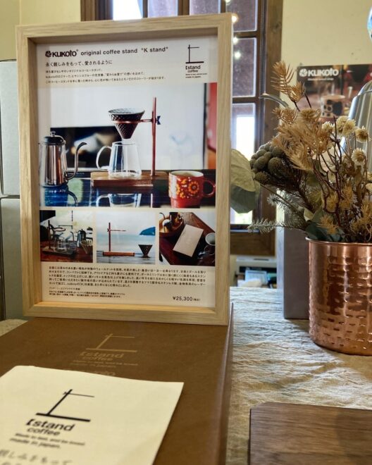 オリジナルで作られたというコーヒースタンドは思いがこもったお品です。