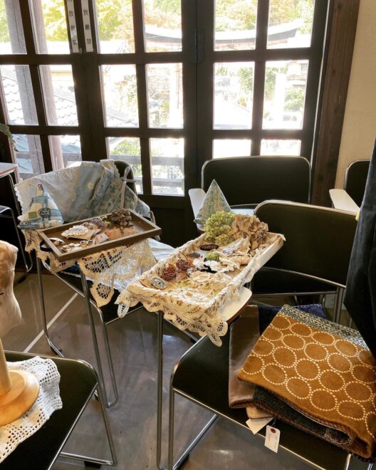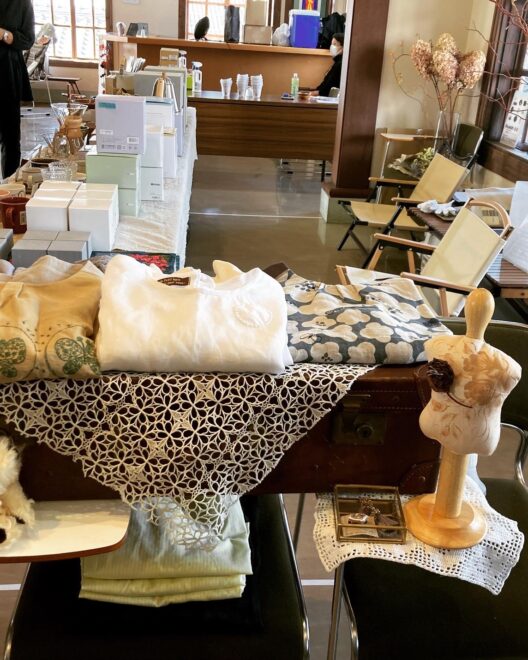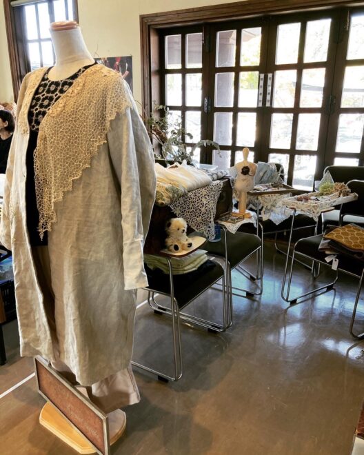 出店店舗様はニットの展示販売の方、焼き菓子専門店『鹿吉』様、北欧雑貨店『kukoto‐クコト』様、そして私のオリジナルハンドメイドのお洋服や小物の専門店『m,cafe』の4つのお店が並びました。