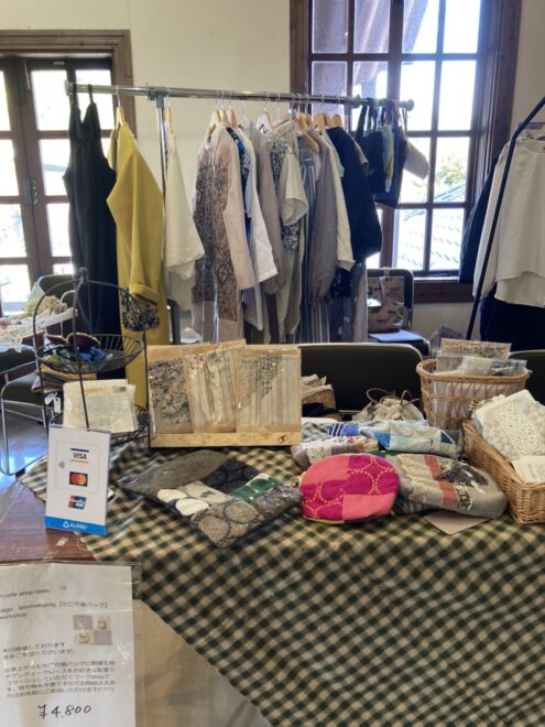また、着物などのリメイクでハンドメイドでバッグやお洋服を制作されている方もお近くの方のようで一度帰られてからまた作品を持ってお店に来てくださって作品を見せていただきました。