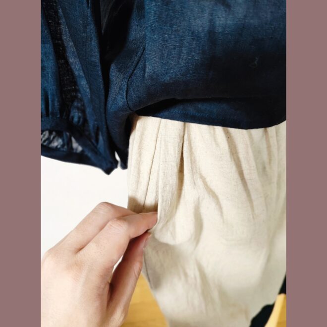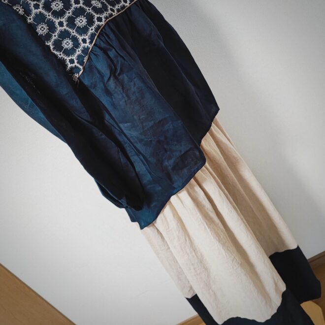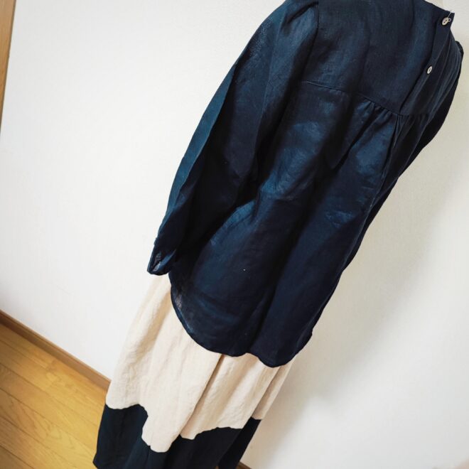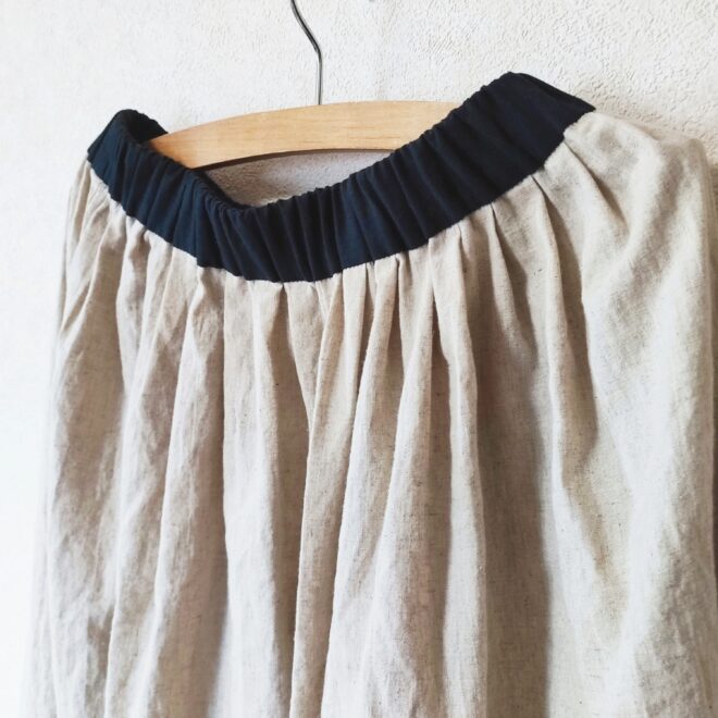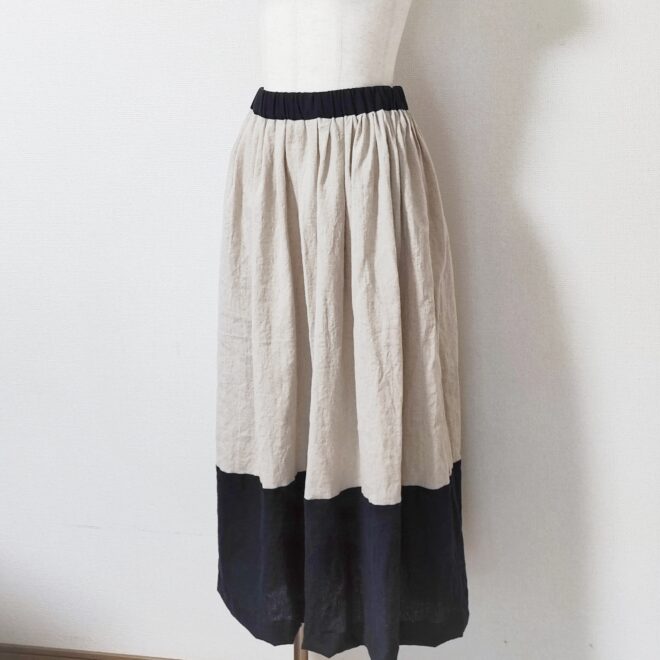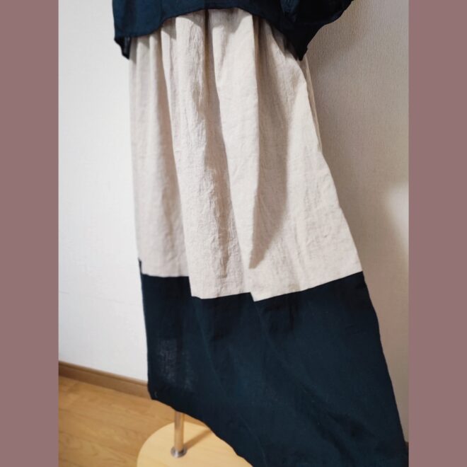 こちらのバイカラーロングスカートを製作いたしました✼素材はコットンリネンでとてもふんわりとした風合いの生地を使用しました。