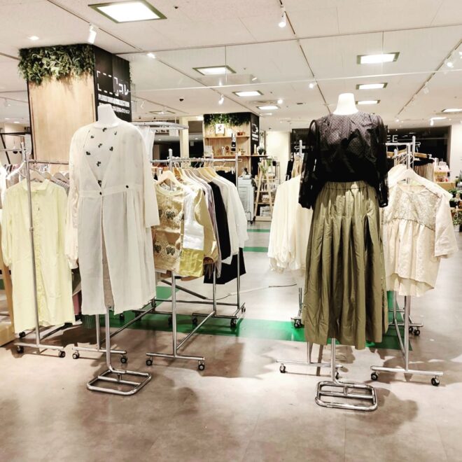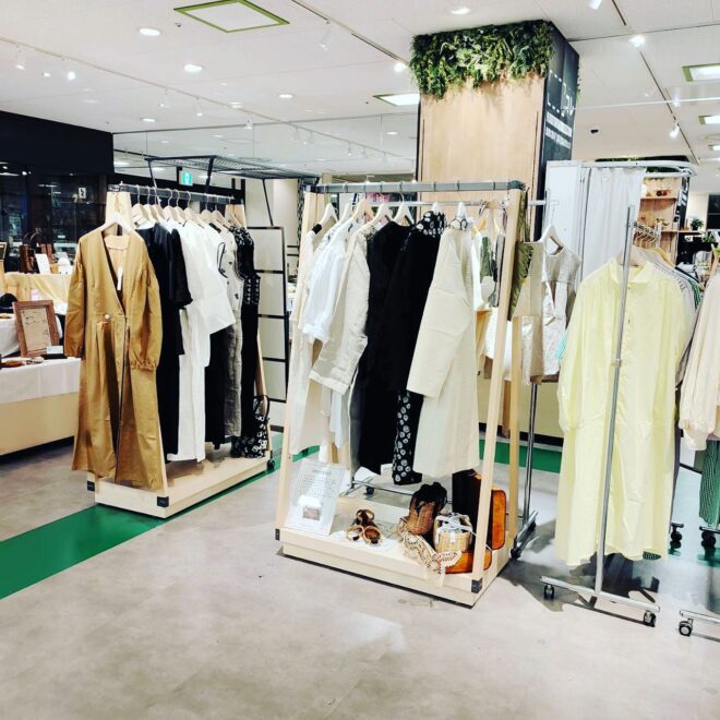 私の作品が百貨店に並んでいるというだけでも驚きと感動で感極まっておりましたが、試着コーナーも設けていただいていたことで、お客様が実際に作品を見て選び試着し、気に入ったものを買って笑顔になっていただいたのは本当にお洋服を作っていて良かったなと思える瞬間でした🌸お客様の反応が直で見えるのが作品製作の原動力だと実感しておりました⁂