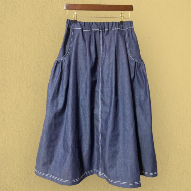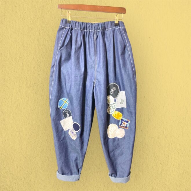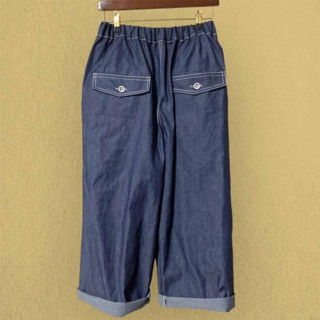 時々デニムを使ったアイテムを作りますが、今回はイベント用にパンツ2点とスカートを1点制作しました。