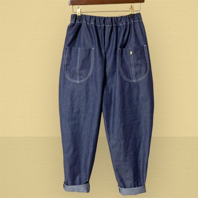 時々デニムを使ったアイテムを作りますが、今回はイベント用にパンツ2点とスカートを1点制作しました。