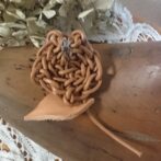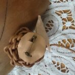 レザーの丸ひもを編んで1輪のお花のブローチを作りました。