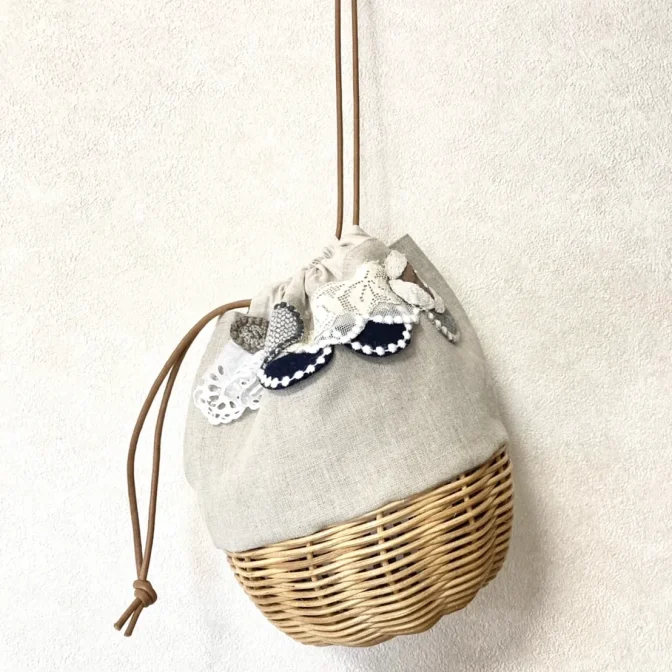 ⟬リネンのカゴ巾着バッグをカスタマイズしましょ ⟭