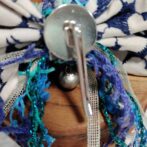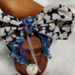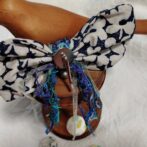 check&stripeさんのoriginal刺繍生地を使ってリボン型のポニーフックを作りました。