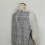 チェックアンドストライプさんのオリジナル刺繍生地 C&Sオリジナルコットンmarie flowerを見頃前後に、袖は海のブロード マッシュルームを使用してブラウスにお仕立て致しました。